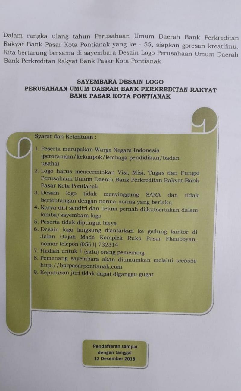 Ikuti Sayembara Desain Logo Bank Pasar!! Pendaftaran dan pengumpulan logo paling lambat tanggal 12.